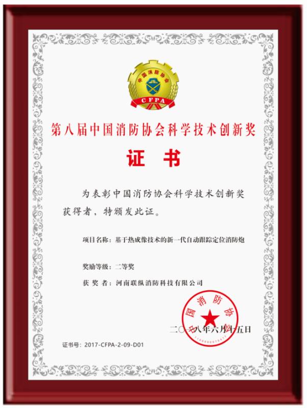 河南聯(lián)縱消防科技有限公司位于鄭州市高新區(qū)電子電器產(chǎn)業(yè)園,擁有專家團(tuán)隊(duì)和標(biāo)準(zhǔn)化工業(yè)廠房和實(shí)驗(yàn)場(chǎng),是一家以大空間智能消防水炮為主導(dǎo)的集科研、開發(fā)、生產(chǎn)、銷售、服務(wù)于一體的高科技消防設(shè)備制造企業(yè)。 公司以“極致產(chǎn)品安天下”為宗旨,針對(duì)市場(chǎng)上普通消防水炮精準(zhǔn)度差、易誤噴、不能實(shí)時(shí)追蹤動(dòng)態(tài)火源、適用場(chǎng)所受限等缺陷,歷時(shí)6年,成功研發(fā)出了第II代自動(dòng)跟蹤定位射流滅火裝置系列產(chǎn)品。公司已通過了IS09001:208、IS014001:2004、OHSAS18001:2007、GB/T29490-2013等體系認(rèn)證,獲得專利授權(quán)三十多項(xiàng),取得國(guó)家級(jí)高新技術(shù)企業(yè)、消防行業(yè)誠(chéng)信示范單位、消防科技創(chuàng)新企業(yè)、第八屆中國(guó)消防協(xié)會(huì)科學(xué)技術(shù)創(chuàng)新獎(jiǎng),產(chǎn)品通過國(guó)家消防裝備質(zhì)量監(jiān)督檢驗(yàn)中心檢驗(yàn),并獲得了公安部消防產(chǎn)品合格評(píng)定中心頒發(fā)的消防產(chǎn)品認(rèn)證證書。 第II代自動(dòng)跟蹤定位射流滅火裝置采用熱成像+捷聯(lián)制導(dǎo)技術(shù),集自動(dòng)報(bào)警、動(dòng)火追蹤、自動(dòng)滅火、視頻監(jiān)控四位一體,具有可靠性高、精準(zhǔn)度好、性能穩(wěn)定、安裝操作方便、智能化程度高、應(yīng)用環(huán)境廣泛等特點(diǎn)。公司產(chǎn)品自上市以來,已經(jīng)有數(shù)萬(wàn)臺(tái)產(chǎn)品被安裝在了數(shù)千個(gè)工程項(xiàng)目中,先后參加了幾十次國(guó)內(nèi)外消防展,贏得了各界人士的一直好評(píng),被央視《我愛發(fā)明》欄目發(fā)現(xiàn)后,央視編導(dǎo)組對(duì)產(chǎn)品性能進(jìn)行了數(shù)十天的實(shí)驗(yàn)和拍攝,先后在以下節(jié)目播出: CCTV-10《我愛發(fā)明》之“烈火哨兵”、CCTV-10《實(shí)驗(yàn)現(xiàn)場(chǎng)》之“滅火試驗(yàn)”、CCTV發(fā)現(xiàn)之旅《品質(zhì)》之“智慧消防 守護(hù)一生”、 CCTV-17新改版《我愛發(fā)明》之“智能水炮”...